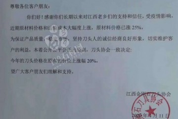 置頂江西金剛石刀頭協(xié)會(huì)發(fā)布漲價(jià)通知,石材刀頭價(jià)格漲幅20%
