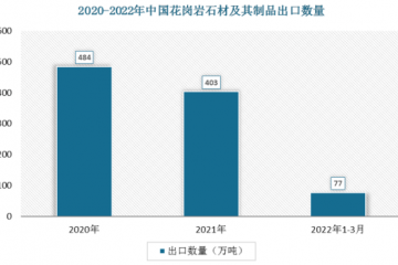 置頂2022年一季度中國花崗巖石材及其制品出口77萬噸,同比下降-6.1%