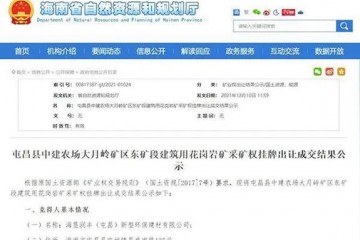 置頂18.5億!海南屯昌縣儲量超5000萬方花崗巖礦出讓成交結(jié)果公示
