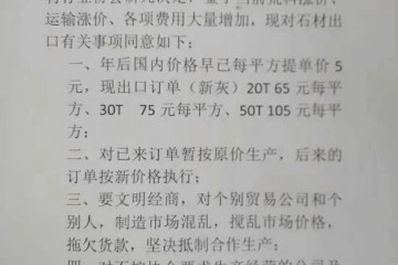置頂文明經商!倡議五蓮石材出口統一價格,每平方提價5元