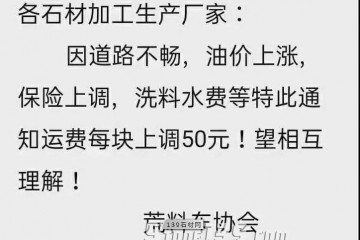 置頂五蓮荒料運費每塊上調50元,國內每平方提價5元,倡議五蓮石材出口統一價格,文明經商!