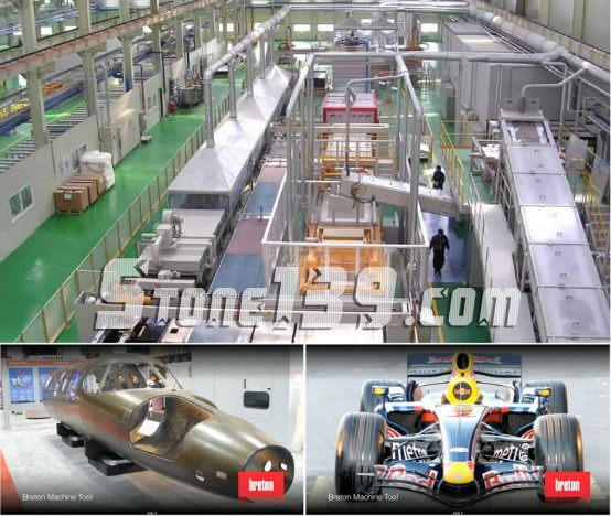 意大利百利通(Breton)公司是世界石材設備的領導者,從1963年成功研發獨有的真空、高壓、振動成型專利技術,一直是全球石材行業生產設備的典范。在人造石設備領域,百利通經過50多年的研發,其全自動化人造石生產線設備已占領幾乎全部歐美市場,也是目前國際上最先進的人造石生產線。