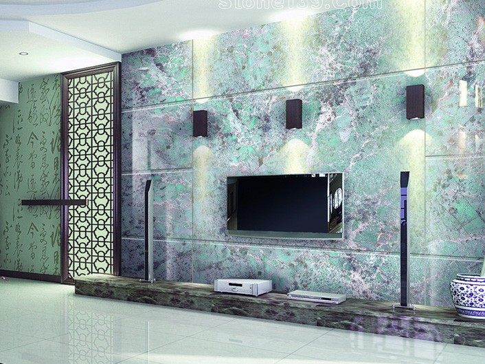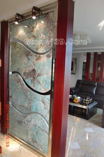 海冰藍石材的裝飾應用 屏風和背景墻。。。。
