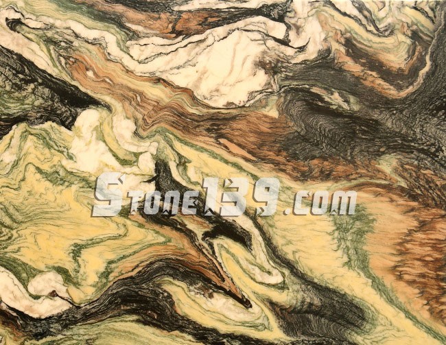 多體組合花紋呈現出并列和類似的并行。石材中交錯的粗紋與細紋、粗紋與細紋加斜向細紋、粗紋加細紋再加粗紋等各種不同的花紋圖案,它們的排列變化形態極為豐富,具有各種不同的藝術變化裝飾效果。趨向丁細直紋或紋間距稀疏的骨骼類花紋可以表現細小、單薄、敏銳或脆弱的性格,裝飾的空間可以使人感到敞亮和擴大。趨向細而密的直骨骼類花紋給人的印象是精致、細膩、華麗或輝煌。趨向粗而密的直骨骼類花紋,其紋理可以反映粗壯、笨拙、堅固等心理狀態,并有空間被縮小的感覺。趨向粗而稀疏的直骨骼類花紋,所反映的表情是粗獷、剛直、豪放,裝飾的空間有擴大感。折線式粗、細紋組合形花紋有節奏感和藝術變幻魔力,有空間立體感。對于粗、細紋組合形花紋來說,因為在石材制品的表面顯現出的曲線絕大多數是自由式曲線,一船難以處理,所以在構圖時,一般從曲率的主從骨骼關系上予以至視.因而要有起伏,要有規律性的變化和趨向性,粗、細紋在數量上要有優勢性和趨向性,以便產生輕盈、柔和、生動和瀟灑的情感。在石材中粗、細直紋與曲線紋組合類型的花紋很多,它們中有的花紋形狀比較復雜,形的變化方式有并列、交錯、重復、變異、密集、相切和連續等,一般難以分選,運用時應加以趨向性區別分類,常規做法是以粗花紋為主導花紋和主導方向,細花紋做次要方向去設計飾面構圖,以求得存異、反襯,并達到統一和諧的目的。尤其是在粗、細花紋的連接時一定要克服粗細極化對比的畫面,這樣才可加強花紋方向的主格調,并使花紋的形式生動有趣。當遇到有中粗花紋存在的情況時,必須用斜向紋、紋間帶有插花紋形或者粗細紋組合類型的花紋作為過渡橋,以緩解方向對比的強度,求得視覺感的平衡點:讓整體的造型藝術更具有感染力,這就是次要方向的作用。