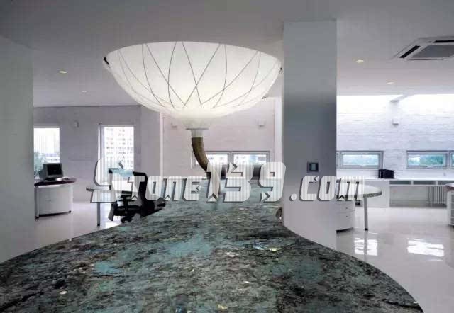 寶石藍富有大自然之色彩、質(zhì)感濃厚、高雅大方,紋路清晰、流暢。自然界中藍色石的品種極其稀有,室內(nèi)裝飾設(shè)計中主要是作為臺面板和背景墻,利用其紋理變化的和色彩搭配給整個空間增添了一份地中海的風情,大大提高建筑產(chǎn)品的裝飾效果和檔次,使其更具高貴價值和設(shè)計魅力。