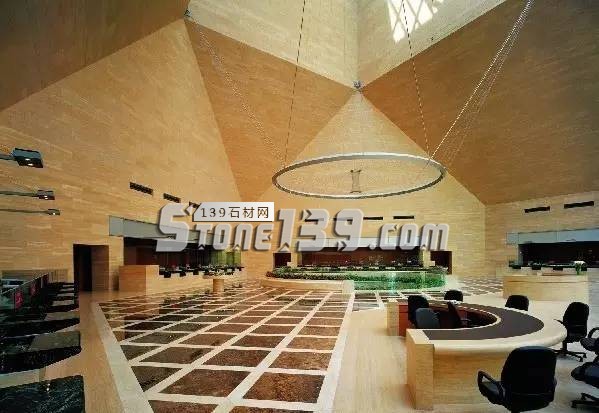 同樣中國銀行總部大樓的外墻干掛洞石標準采用