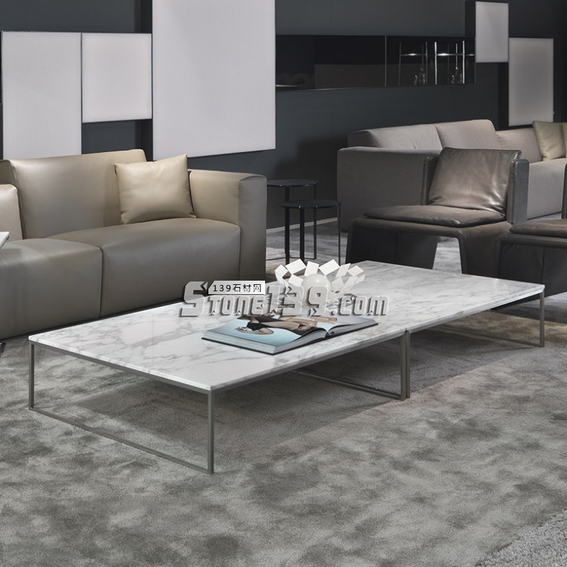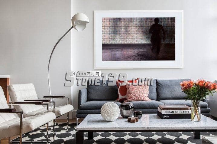 白色大理石(細花白) 灰色布的材質沙發