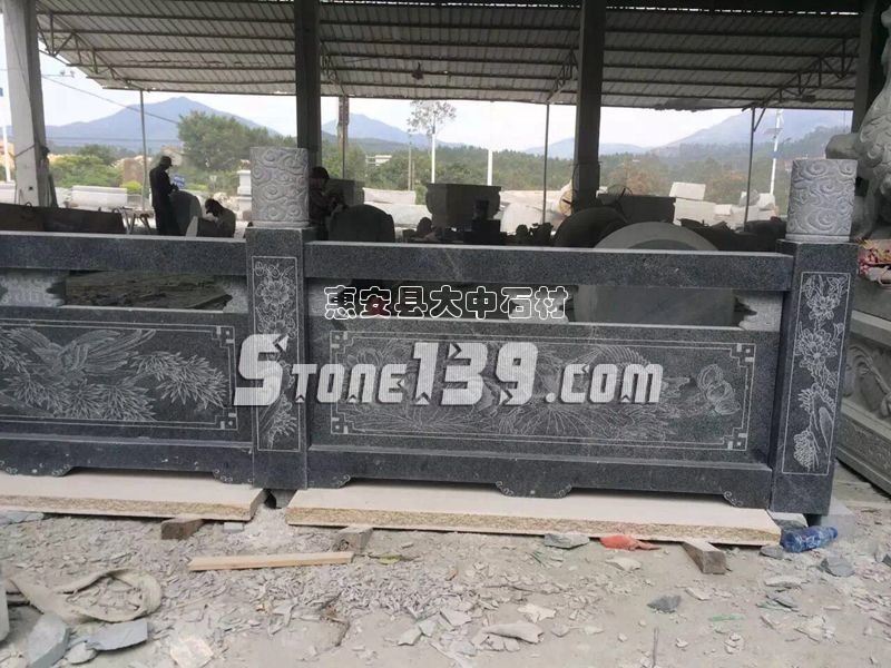 黑色石材護(hù)欄 帶圖案雕刻的護(hù)欄板