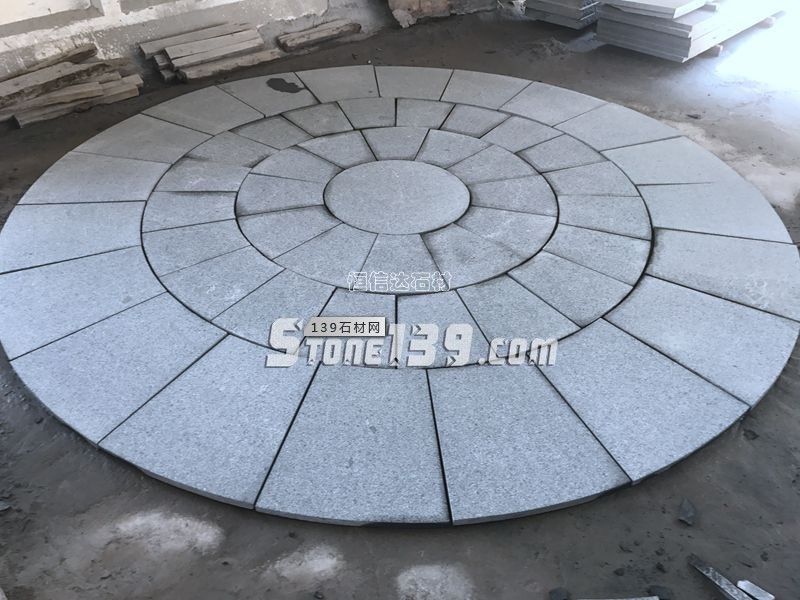 老礦芝麻黑花崗巖圓形地鋪 火燒面 荔枝面地鋪 圓形地鋪 中心聚攏圓形拼貼地鋪