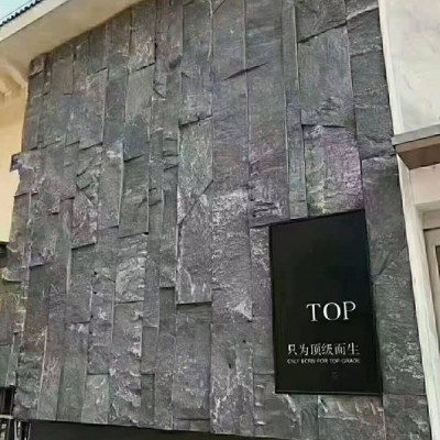 老礦芝麻黑蘑菇石自然面墻面應用