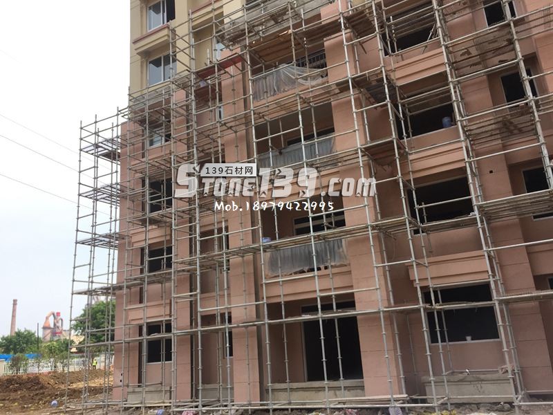 紅色花崗巖外墻干掛現場施工案例