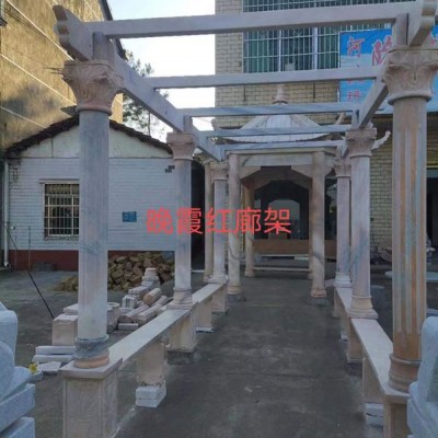 湖南大理石涼亭廠家(晚霞紅六角亭)