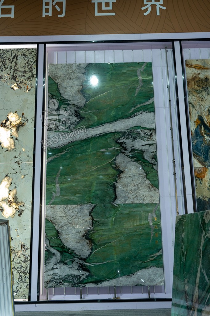 光澤:綠色奢石百達翡翠通常具有良好的光澤,使其在光線照射下更加引人注目。光澤可以增強石材的質感和美觀度,使其成為室內裝飾中的亮點。