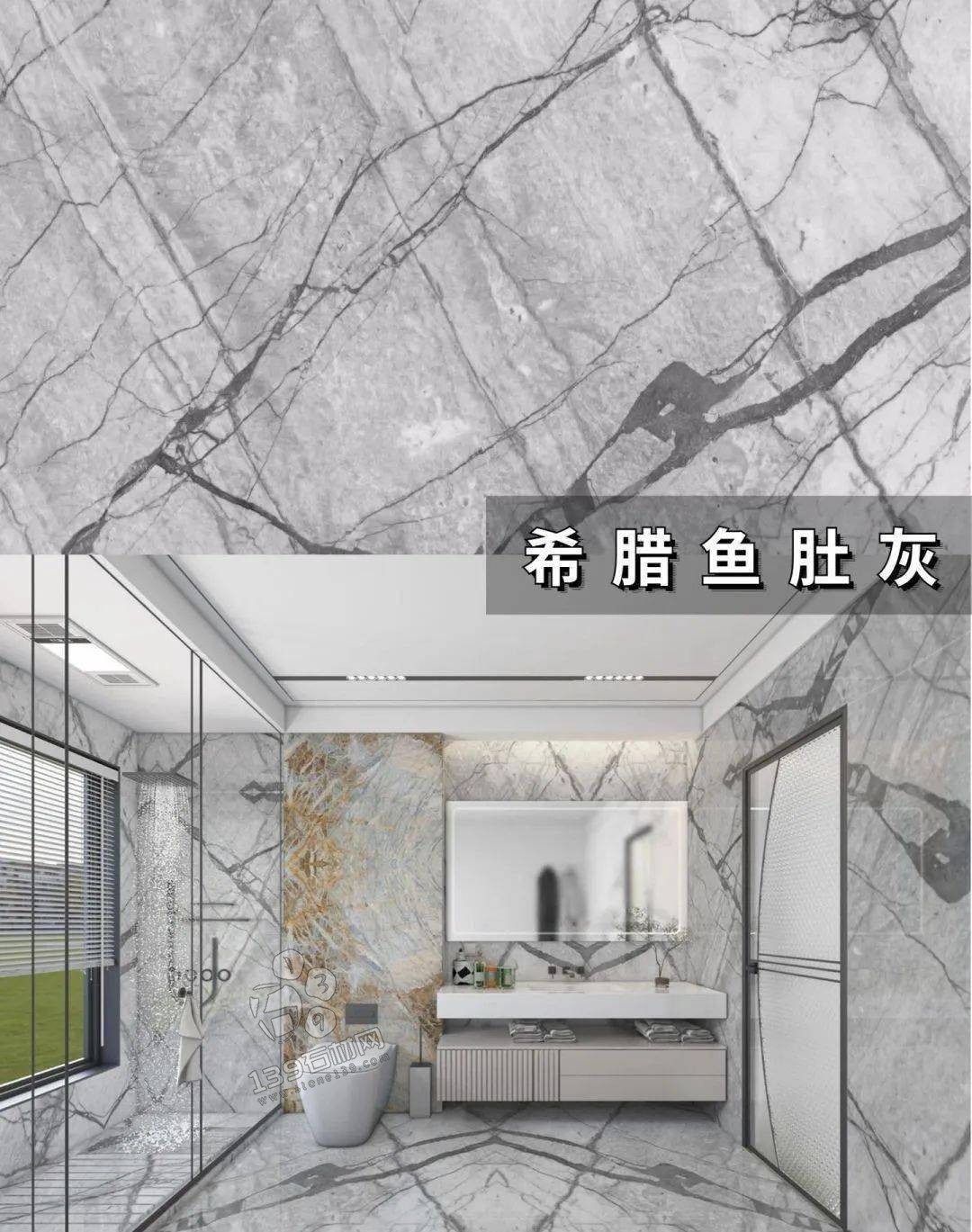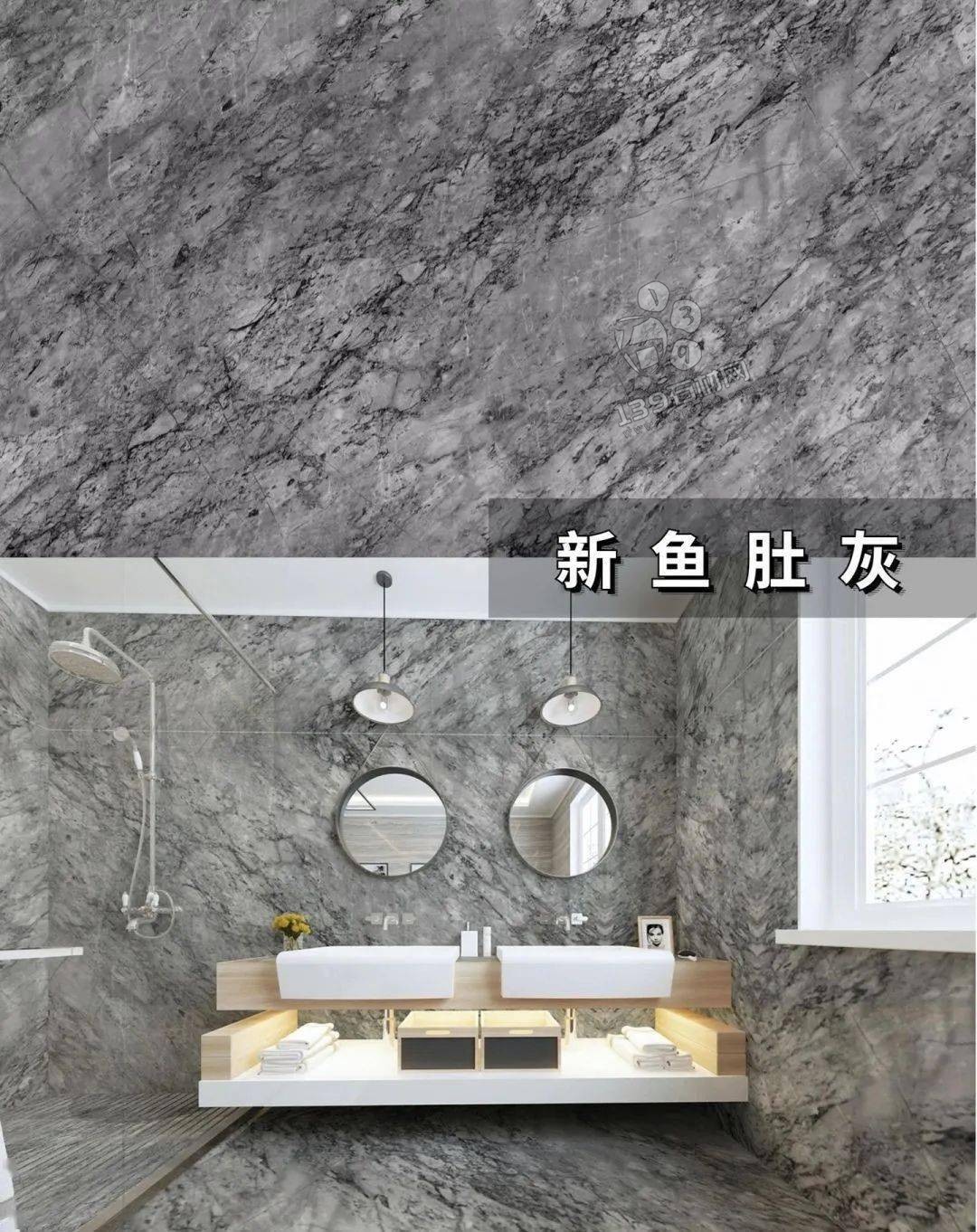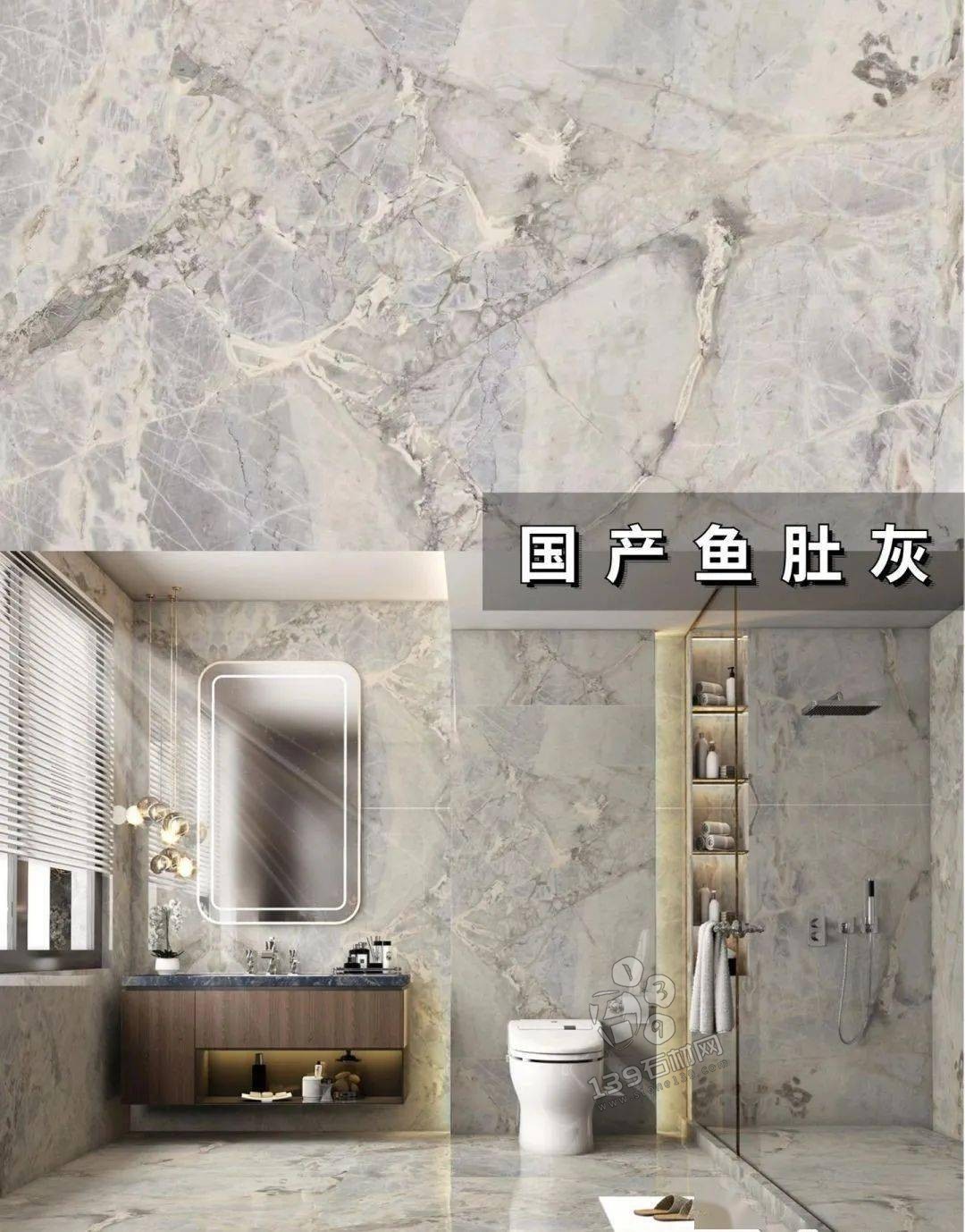 國產魚肚灰,小編認為最好看的魚肚灰,板面帶有藍色基調,紋理夸張不失美感 在實際案例中有著相當出色的表現。